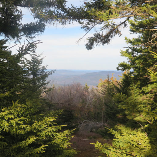I skirted around the summit of Cole Hill, and then traversed a very gentle col. It was around here that the trail was mildly overgrown, but really, that just meant stuff brushed the outside of my ankles here and there. I made quick time over to Cooley Hill’s summit, and saw that old fire tower foundation. Neat! No views, so I turned around and made for the views.